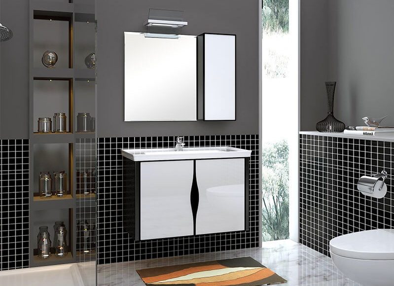 Black Lacquer Mirrored Bathroom Cabinet BC17-L03