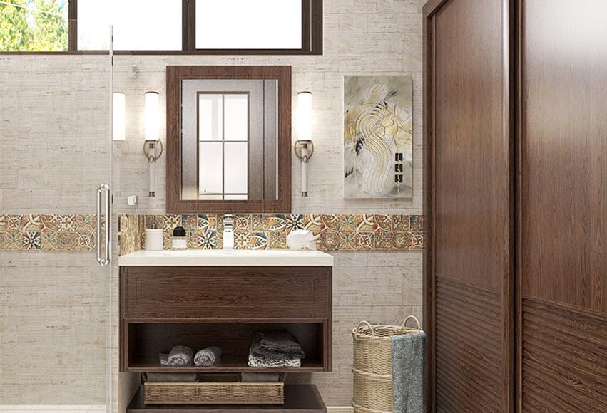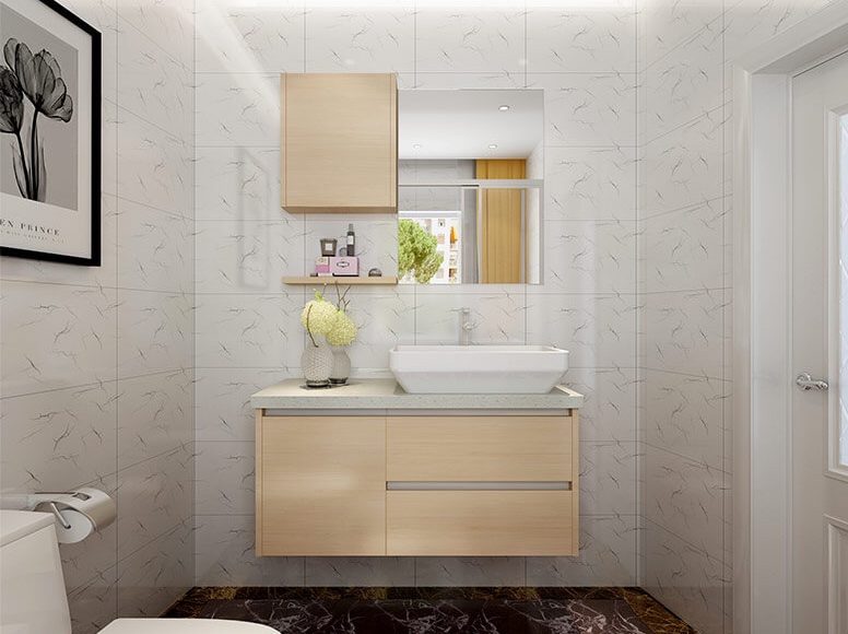 With different color wall ceramic tile, whole bathroom becomes more harmonically. Embedded wardrobe provides great storage space, and sliding door designs is suitable in this bathroom. It is really a considerate design to have an open cabinet in the bottom of the vanity, and it also has a closed storage space at the top. OPPEIN products are matching with necessary hardware and other accessories. All the colors, styles, shapes, size, materials can be customized among your budget.