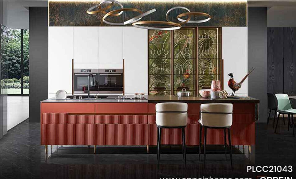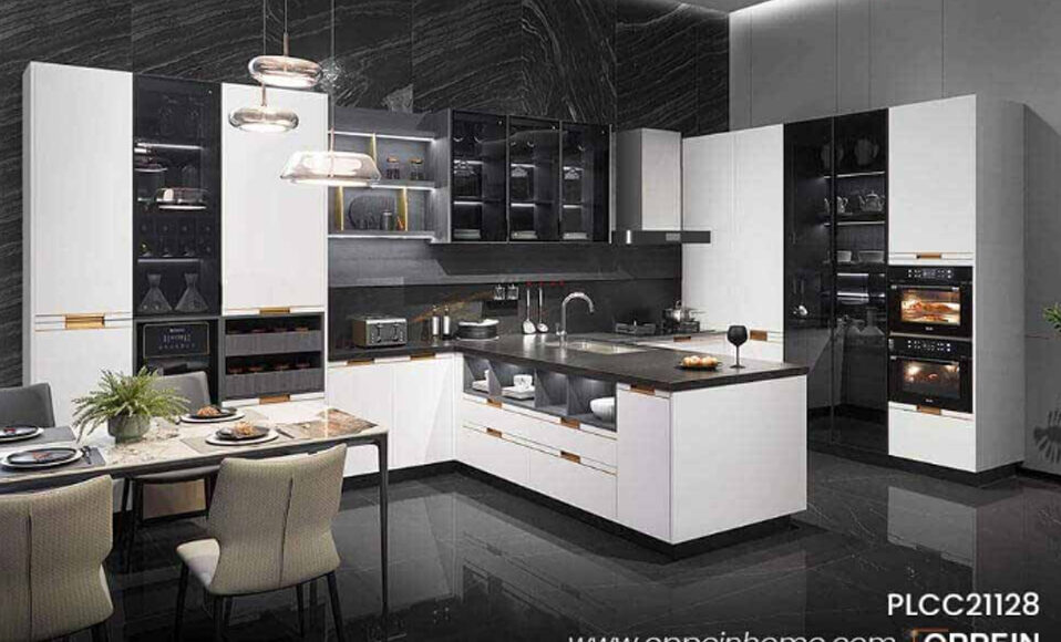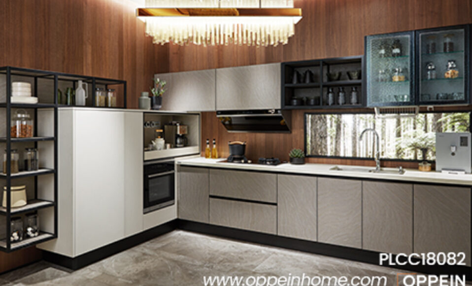 Function/Humanization: Reasonable function partition. The thin metal open cabinet makes daily objects easier and more convenient. The semi-open drawers and tall glass storage cabinets make the storage in the kitchen orderly.