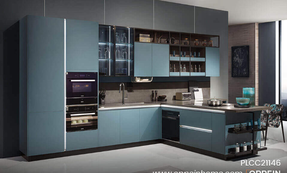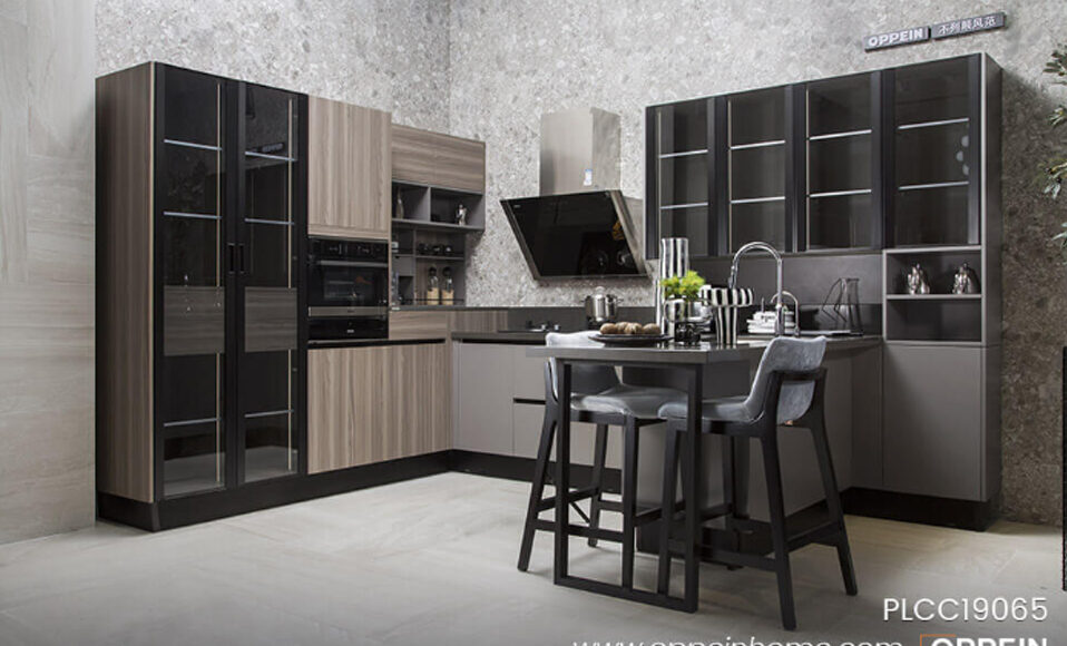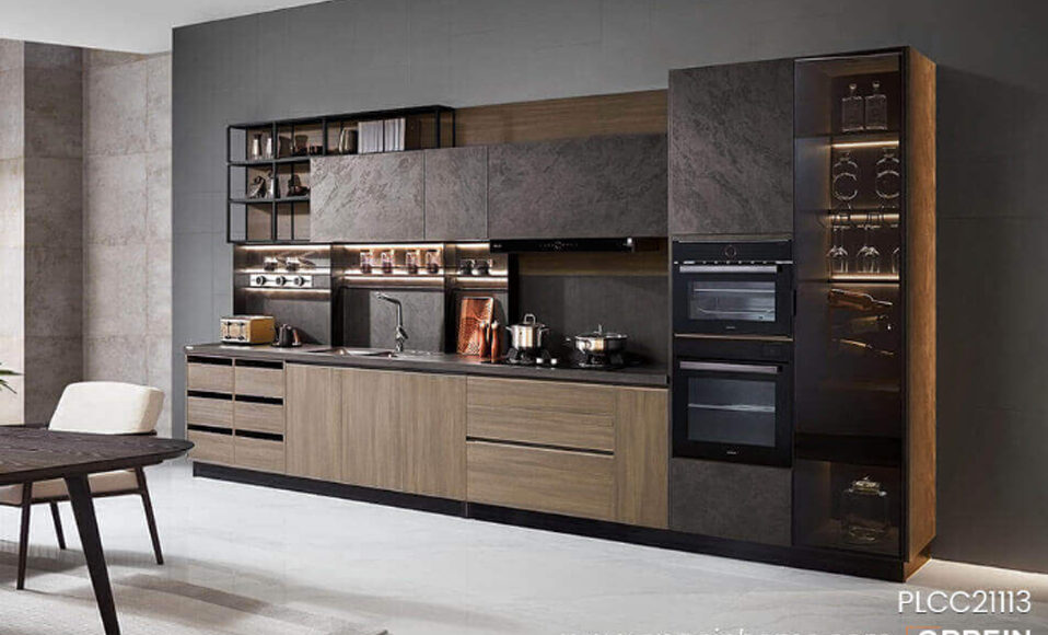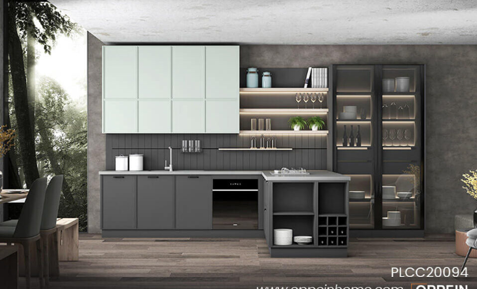 Modern Wooden Gray Kitchen Cabinet PLCC21113