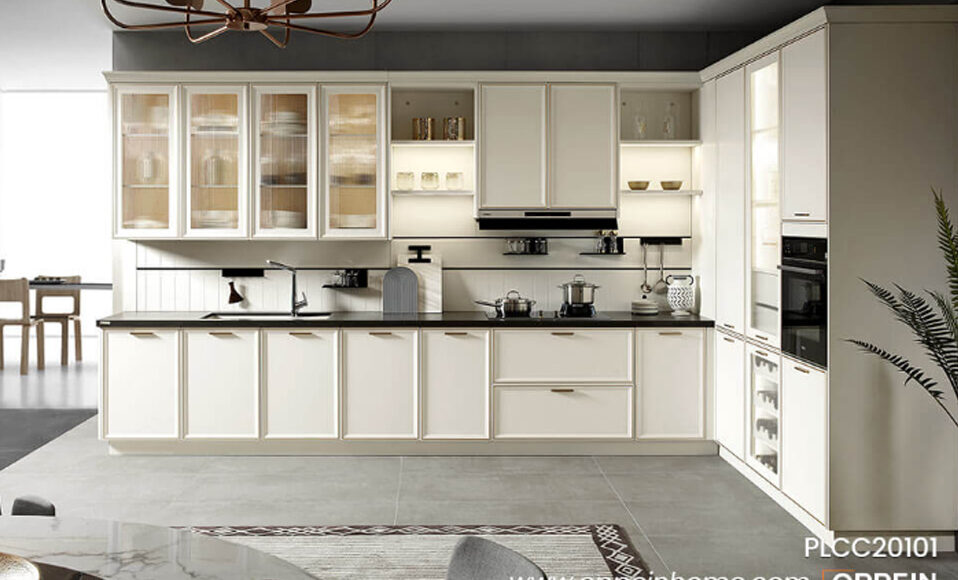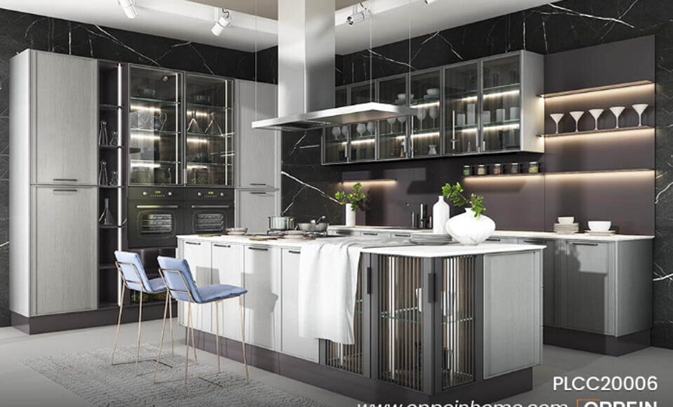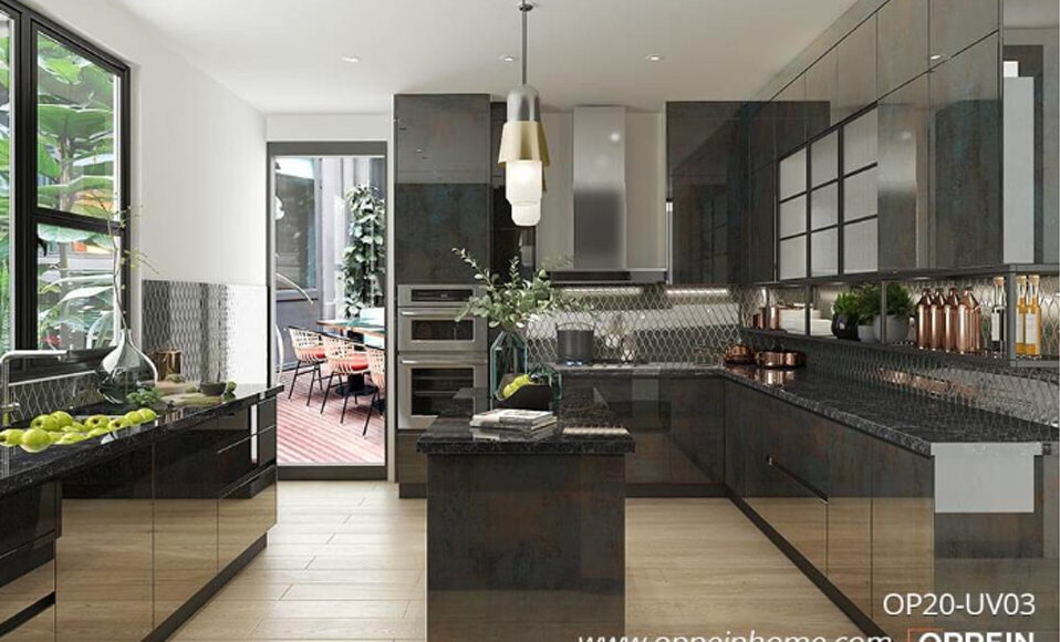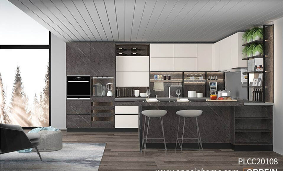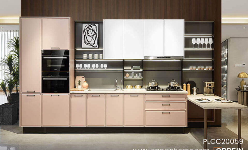 Function/Humanization: The refrigerator and oven are designed in the cabinet. Metal open shelf design on stage. The wall-mounted system has been newly upgraded: the wine rack pendant is added to make the space use more contextual and reflect the petty bourgeoisie life. The cabinet is designed with high cabinet to the top, which increases the storage space of the kitchen, elongates the space ratio, and makes it more atmospheric. Aesthetic is not the only pursue of OPPEIN kitchens, functionality should be highlighted too. You can also explore our kitchen catalogues for more inspirations.
