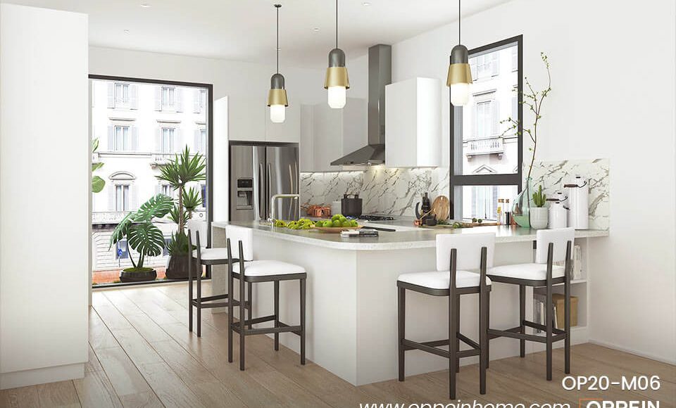 A luxury white kitchen? That’s for real. Only if we pay attention to details, will there be a chance to enhance the luxury of kitchens. Therefore, we have incorporated lighting, golden pocket handles, and transparent glass cabinets into this modern kitchen design. Little by little, these details elevate the kitchen to a new level of luxury, instead of just being a black and white kitchen.