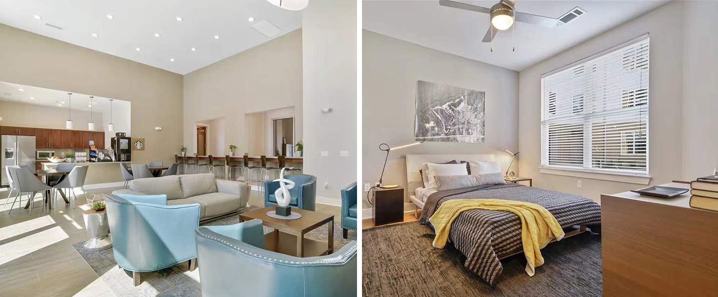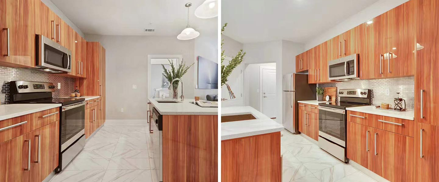 OPPIEN USA Baton Rouge River House project . River House’s architectural style and interior finishes are fresh and modern. There are various different types of room for choice. OPPEIN provide 224 units of kitchen cabinets for this project, which match well with modern style.